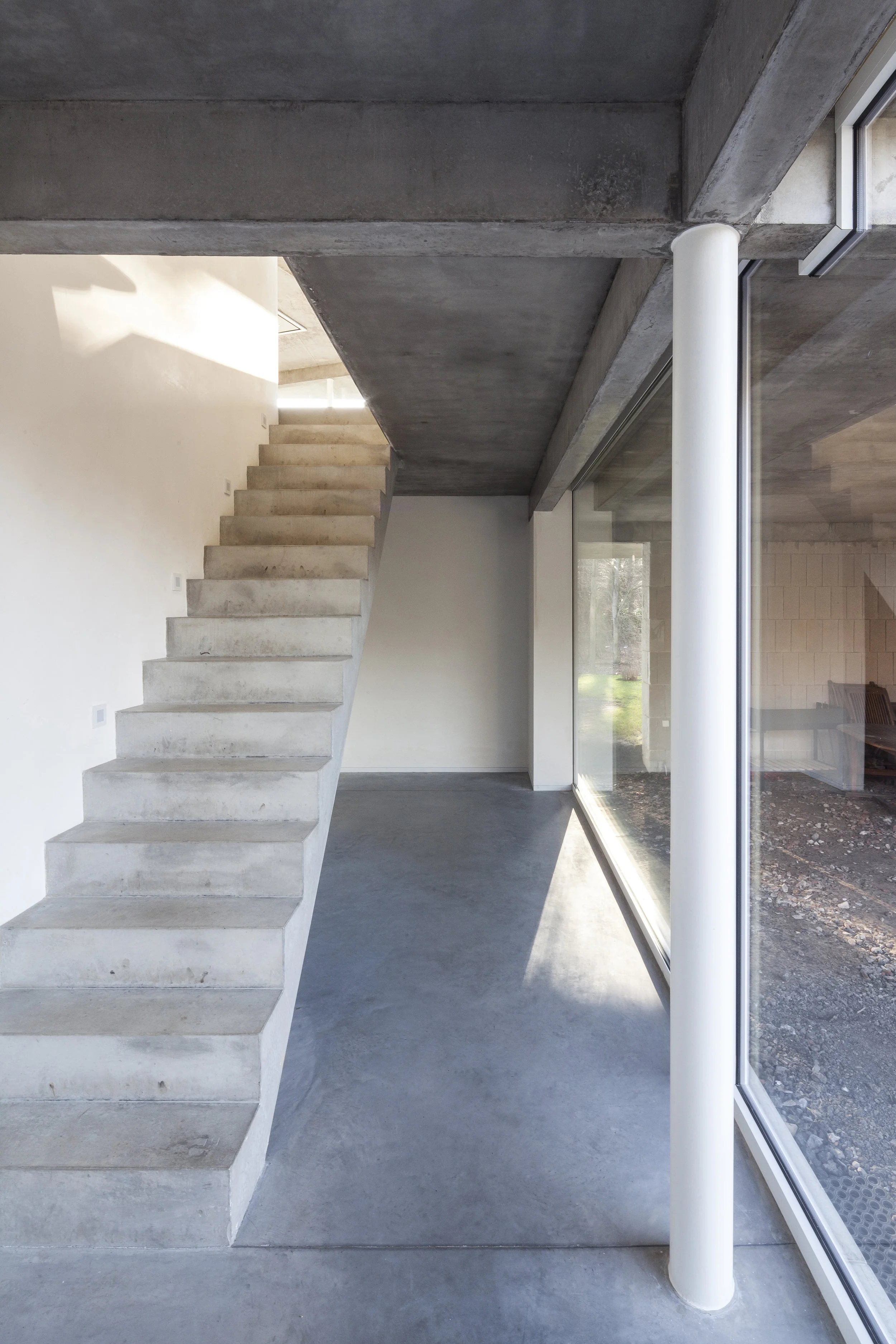 The ceilings are fair-faced concrete, the floor a poly-concrete.
